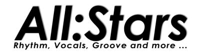 Herzlich Willkommen!!! Schön,      dass      ihr      auf      unser Hompage vorbeischaut! Wir   All:Stars   freuen   uns   sehr   über den Besuch und euer Interesse. Vielleicht   habt   ihr   ja   auch   Lust uns    zu    hören    oder    für    andere Anlässe   zu   buchen.   Unsere   Band spielt     u.     a.     auf     Trauungen, Taufen,        Fest-        und        Dank- gottesdiensten,      Kommunionen und          anderen          kirchlichen Veranstaltungen. Kontaktiert  uns einfach!